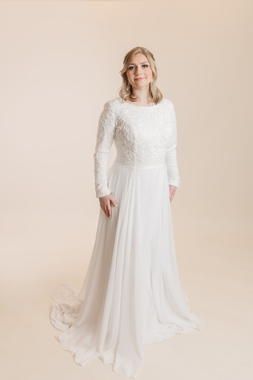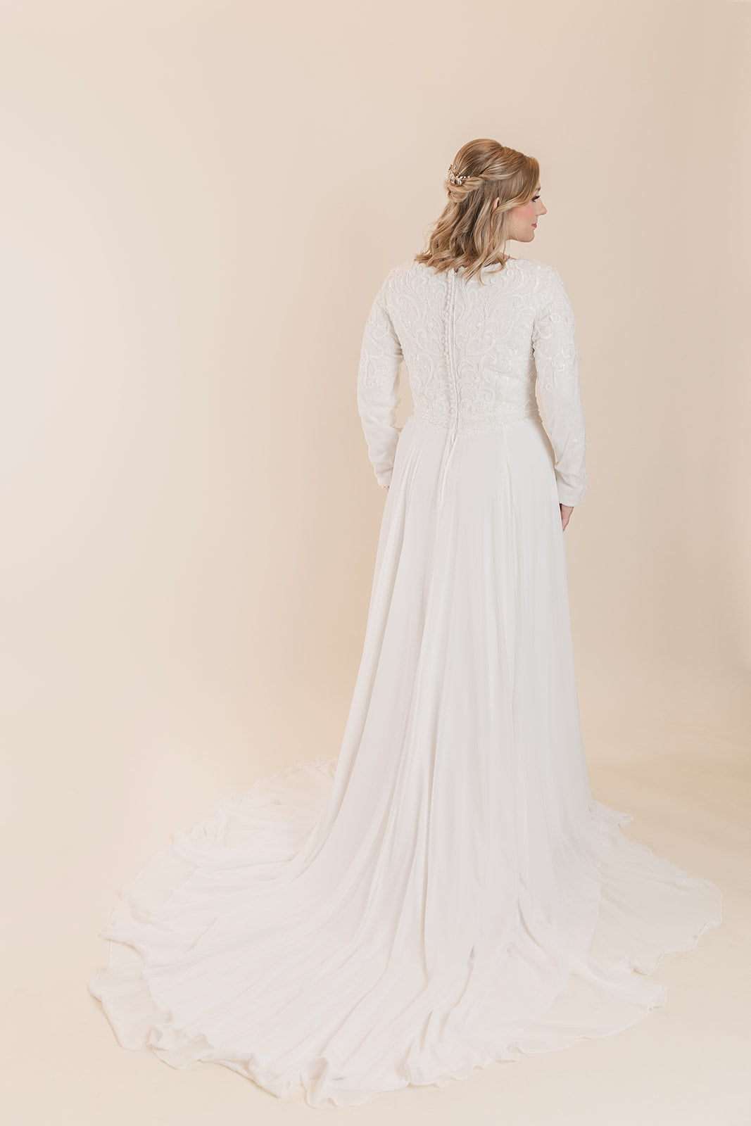 Today's modern brides are embracing modesty with countless stylish wedding gowns to choose from. If you seek an elegant, well-designed dress made from high-quality fabrics, you've come to the right place. Our brides don't have to sacrifice class for style—they can have both.