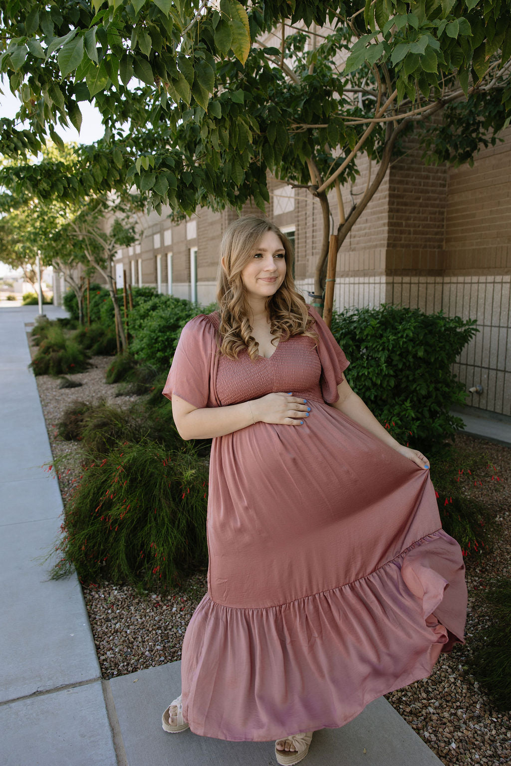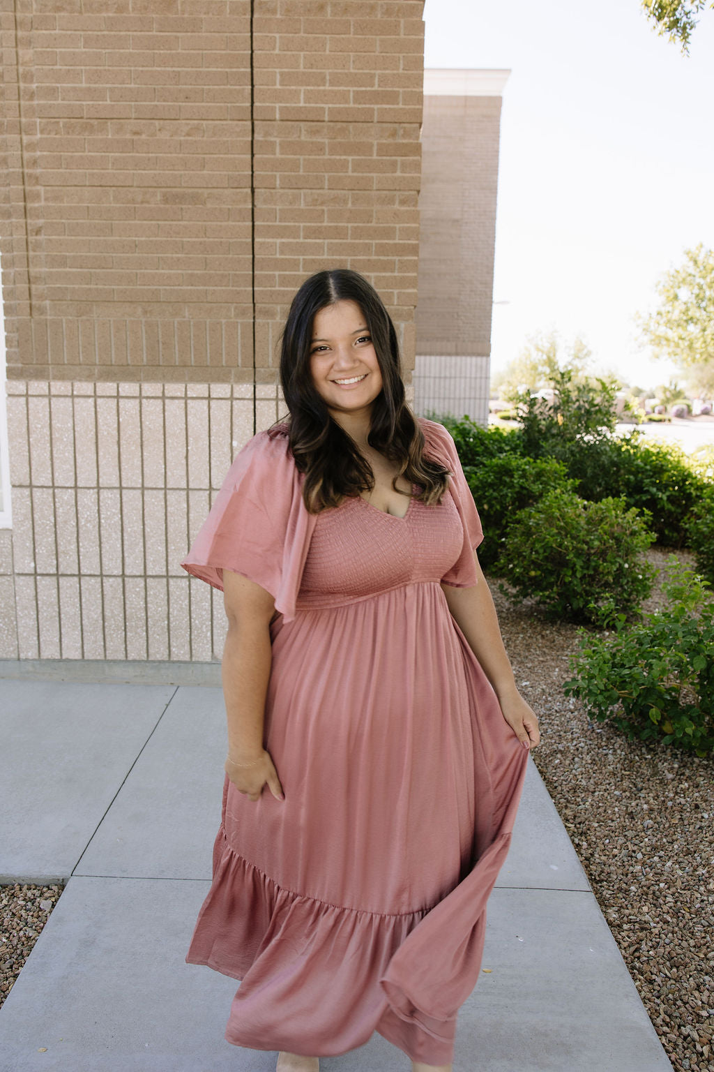 This classy ruffle Amanda dress will give you effortless fun fall fashion! We love the, oh so vibrant Dark Mauve color, you can easily wear this look all season long! Features a shirred bodice, paired with feminine short flutter sleeves! This one is here to make your fashion choices a breeze, grab your favorite felt hat, booties and you are on your way!