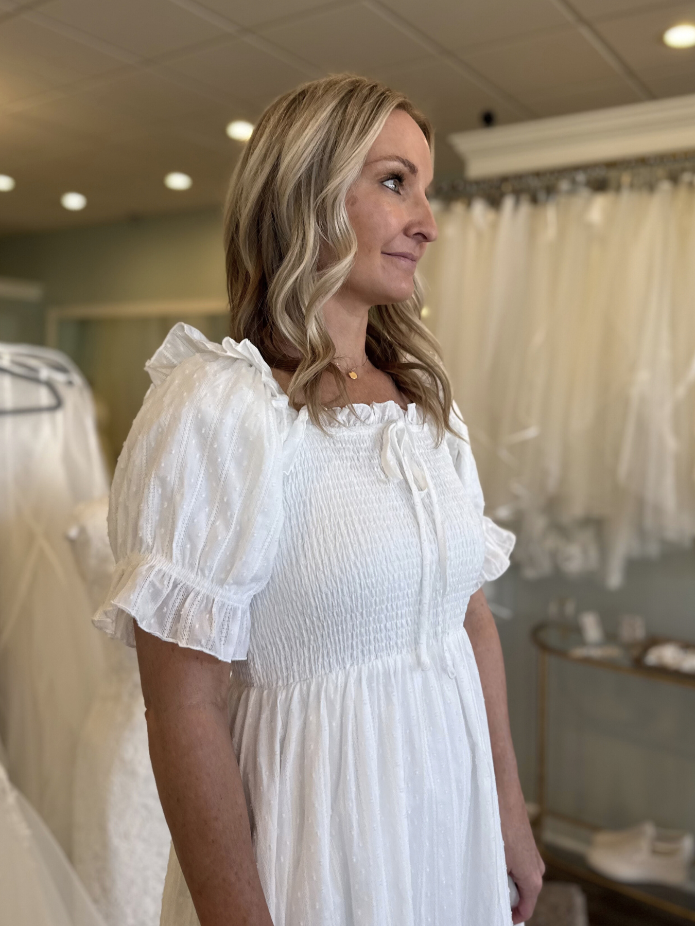 We strongly encourage you to have your measurements taken by a professional seamstress. Measurements should be taken in the undergarment you plan to wear with your wedding dress, bridesmaid dress or prom dress. If you cannot get professional measurements, we recommend that you do not take the measurements yourself. In order to obtain accurate measurements it is necessary to have someone assist you. Please remember that A Dressy Occasion is not responsible for measurements taken outside of our showroom. Please contact us if you have any questions.