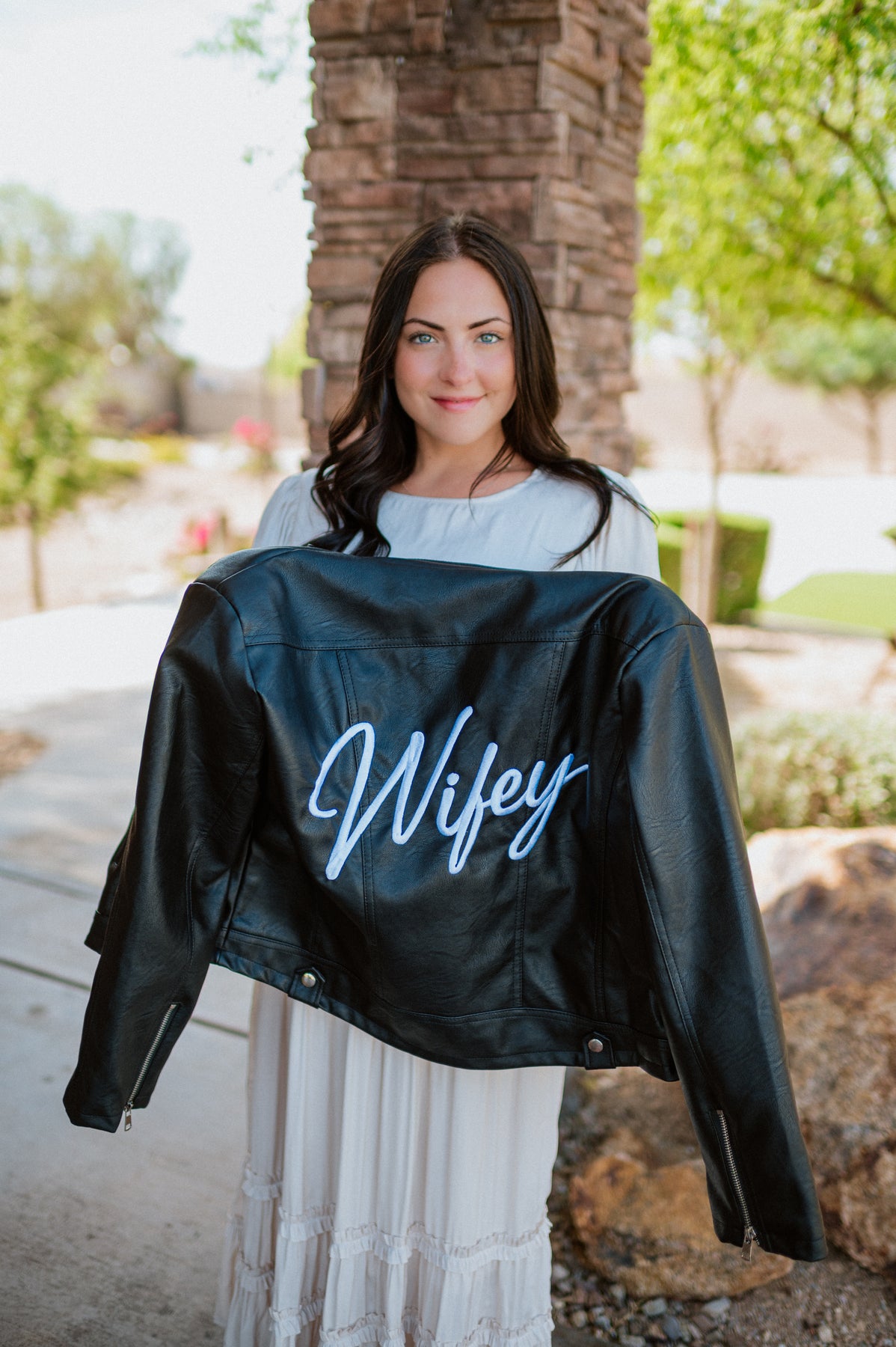 Each jacket can be personalized, making it the perfect statement piece for your reception, photos, or getaway look. Pair it with your gown for a stunning contrast or wear it after the big day for a stylish keepsake that celebrates your “just married” glow.