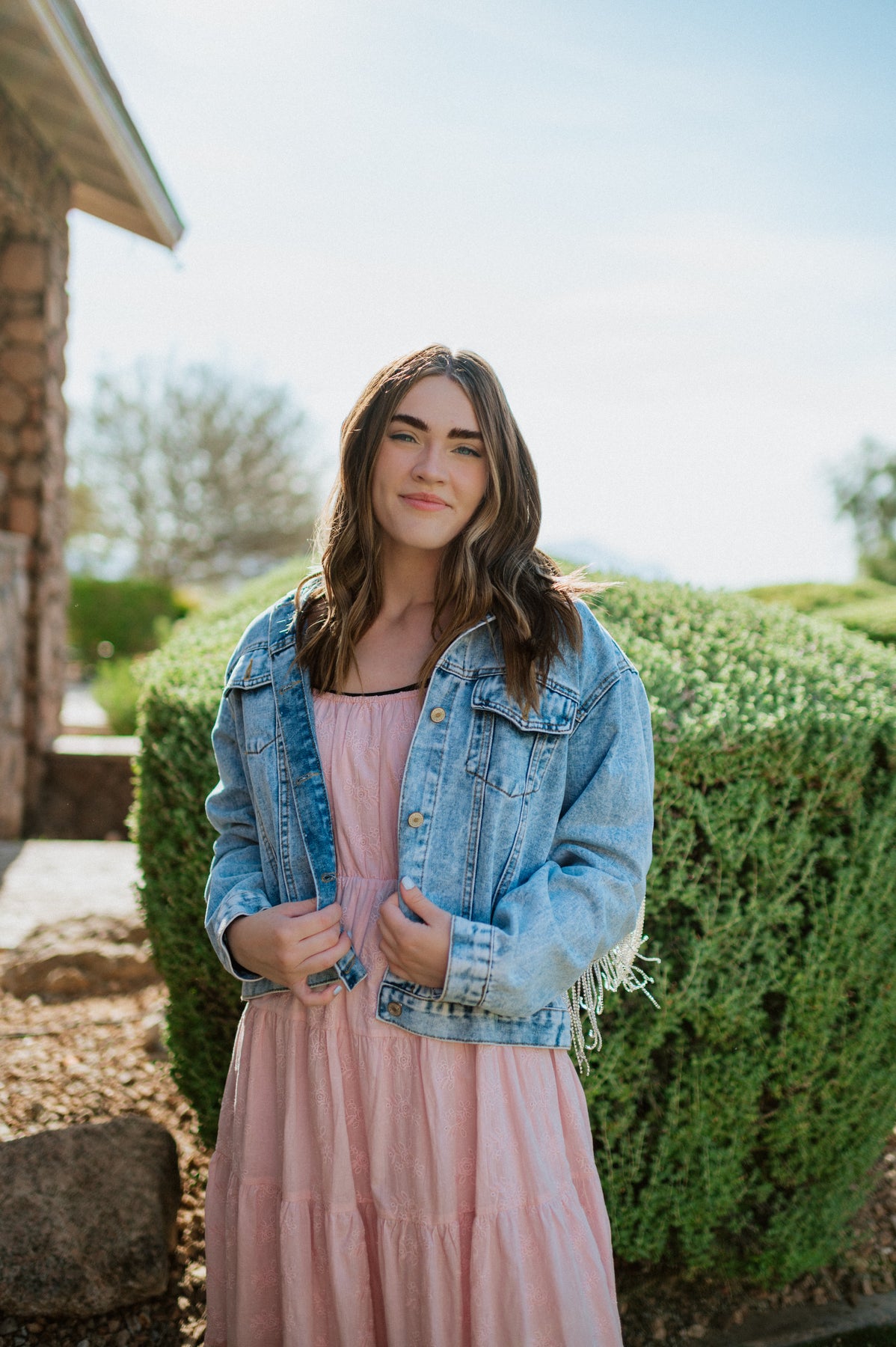 Classic Comfort: Made from a classic denim with a comfortable fit. It's the perfect weight to layer over your dresses or wear to your bridal shower.